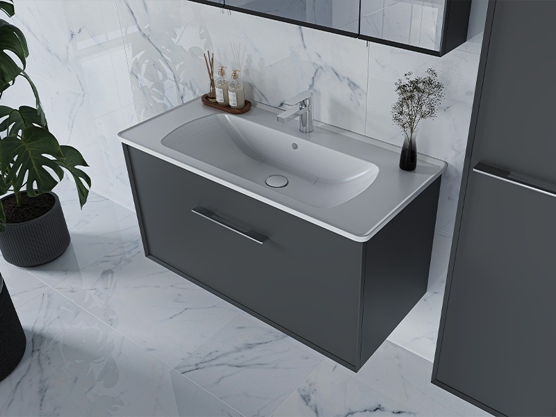 6 farklı renk seçeneğine sahip lake boyalı derin bordürlü çekmece ve gizli çekmece özelliğiyle banyolara yeni bir ses getiren Talya serisi, akıllı çözümlerin estetik yorumunu banyolara taşıyor.
