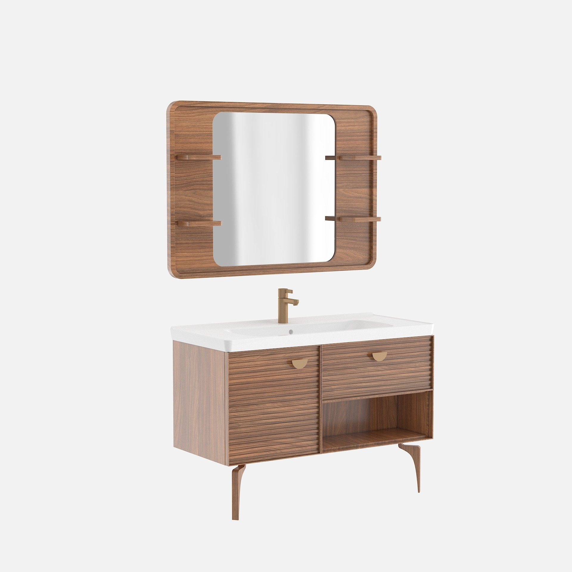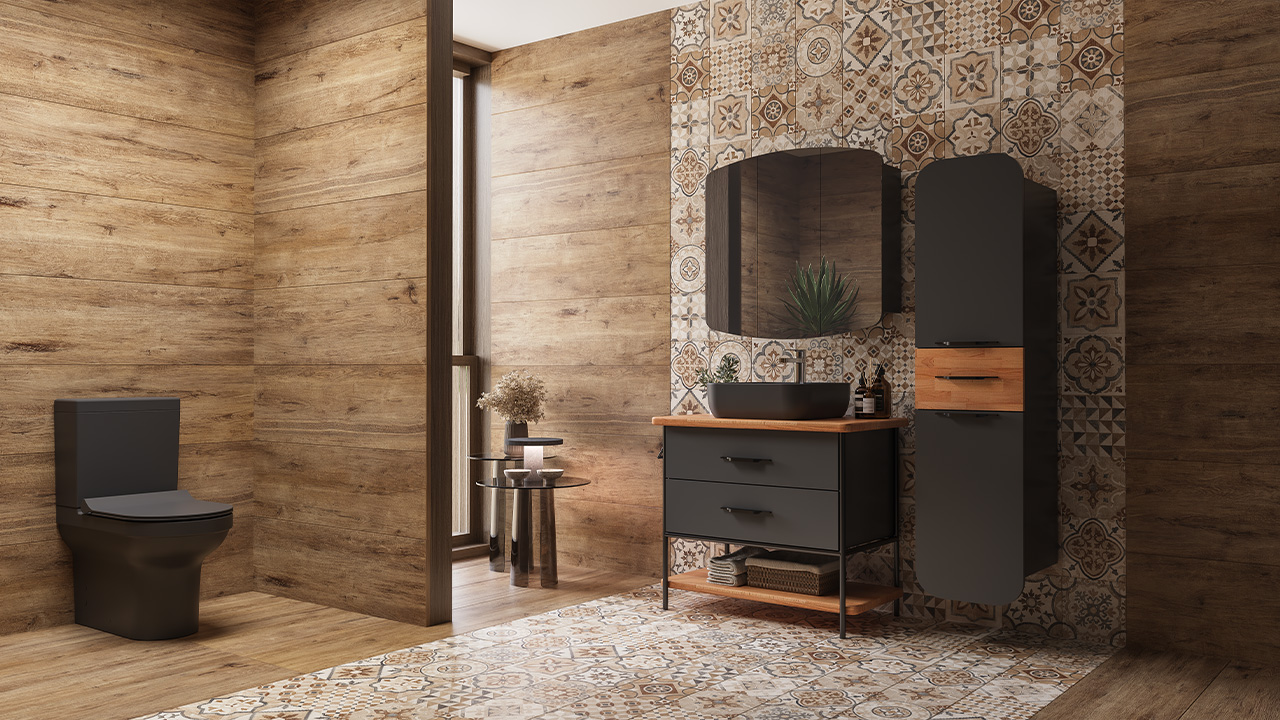 Tüm mekanlara kolaylıkla uyum sağlayan ceviz ve teak renk seçenekleriyle de, iz bırakan renklerin huzur veren sakinliğini banyolara getiriyor.