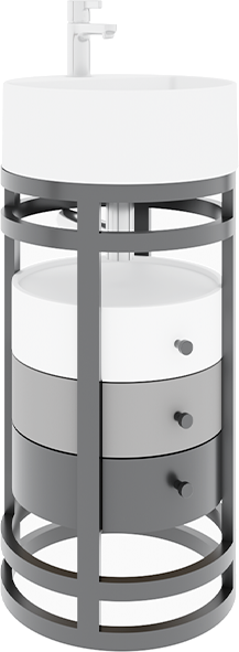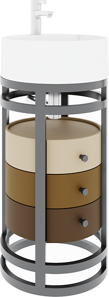 Bir rengin degrade geçişi ile uyumu yakalayan 3 farklı renk paletine sahip Liv serisi, tasarım formunu tamamlayan yuvarlak metal ayağı ve depolama alanı yaratan boy dolabı alternatifiyle banyolarda fark yaratıyor.